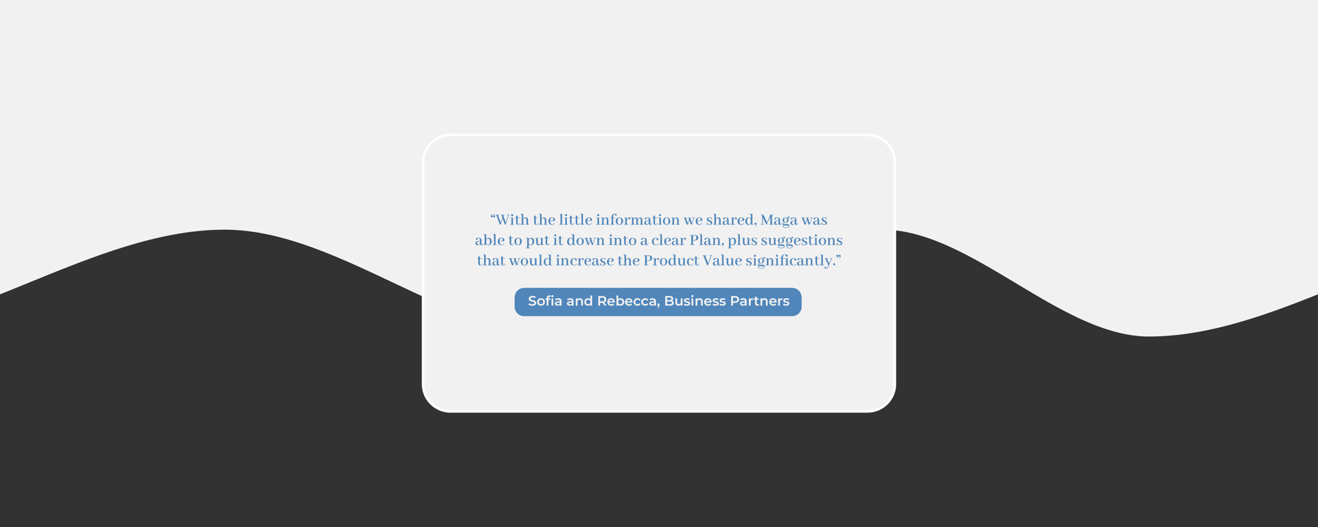 "Maga is the person I go to when I have fluid and out-there ideas. She brings Structure and Strategy on how to break it down, how to market it, how to really build out a plan".