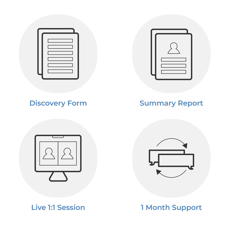 You’ll receive a summary report with your action plan, your offer structure, and tools to help you stay on track.